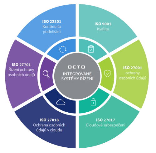 Integrovaný systém řízení OCTO se nezaměřuje výlučně na informační bezpečnost. Má také certifikaci podle ISO 9001 (kvalita) a ISO 22301 (kontinuita podnikání) poskytující zajištění vysoké kvality služeb, kterou lze udržovat i v nejméně očekávaných a obtížných situacích.