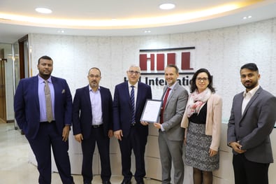 LRQA presents the ISO 19650 certification to Mr Abdo Kardous, Regional President and Mr Amine Tayeg, Regional QMS Director at Hill International, Inc.