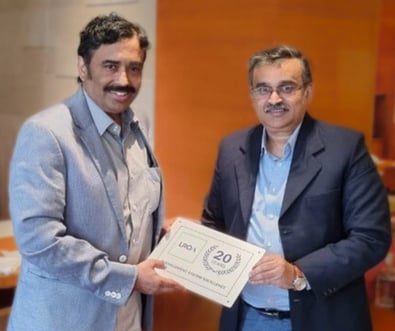LRQA presents the client award to Mr. Balfour Manuel, MD of Blue Dart, for 25 years of management excellence and stakeholder focus.