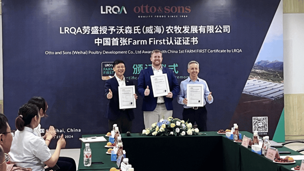 LRQA awards Otto and Sons China’s first Farm First... 28 May 2024 LRQA proudly awarded Otto and Sons (Weihai) Poultry Development Co., Ltd, a subsidiary of the U.S. OSI Group,... Read more