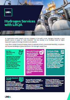 LRQA offers a range of products helping clients to evaluate products, demonstrate feasibility, compliance and improve knowledge of global standards in the hydrogen supply chain.