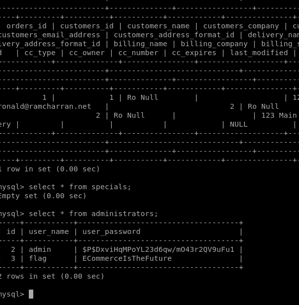 The -O flag writes the contents of the archive to the screen. However, this didn’t obtain a flag, or at least not until we were able to crack the root password which we didn’t complete before the end of the CTF. In doing this it did reveal that the user’s password for OTRS was OTRS.