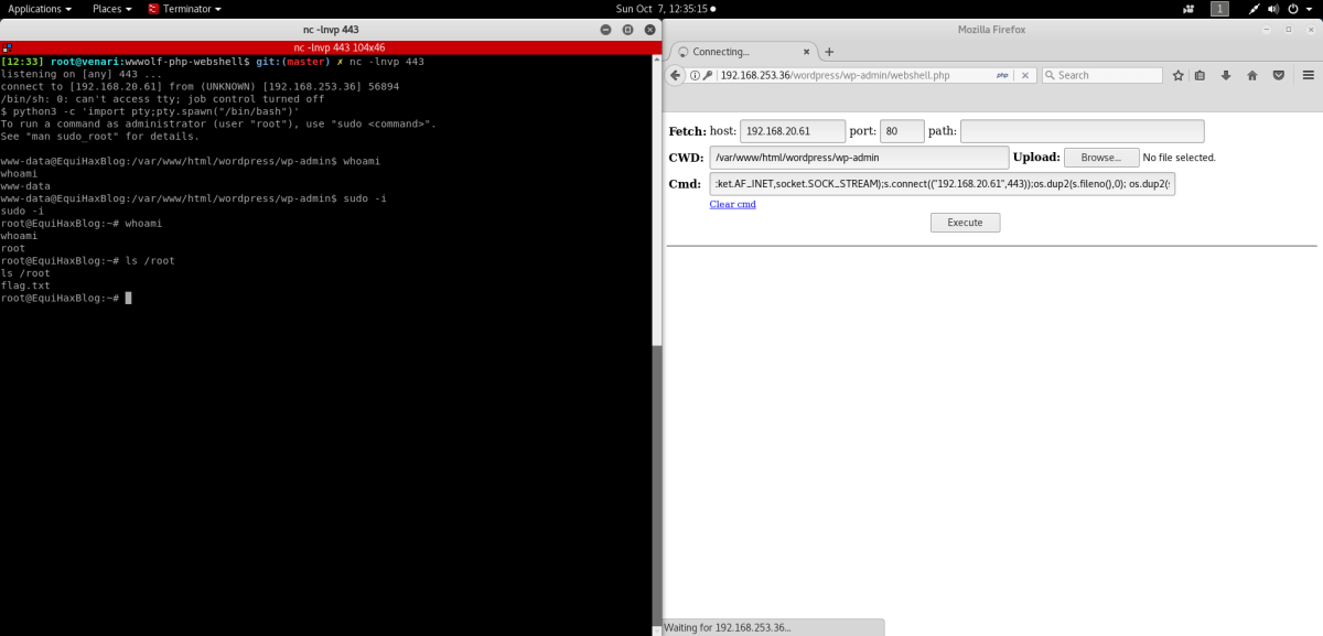 The essence of the vulnerability was editing the PGP::Bin file and parameters to execute some other binary; in this example we used a simple Python reverse TCP connection.
