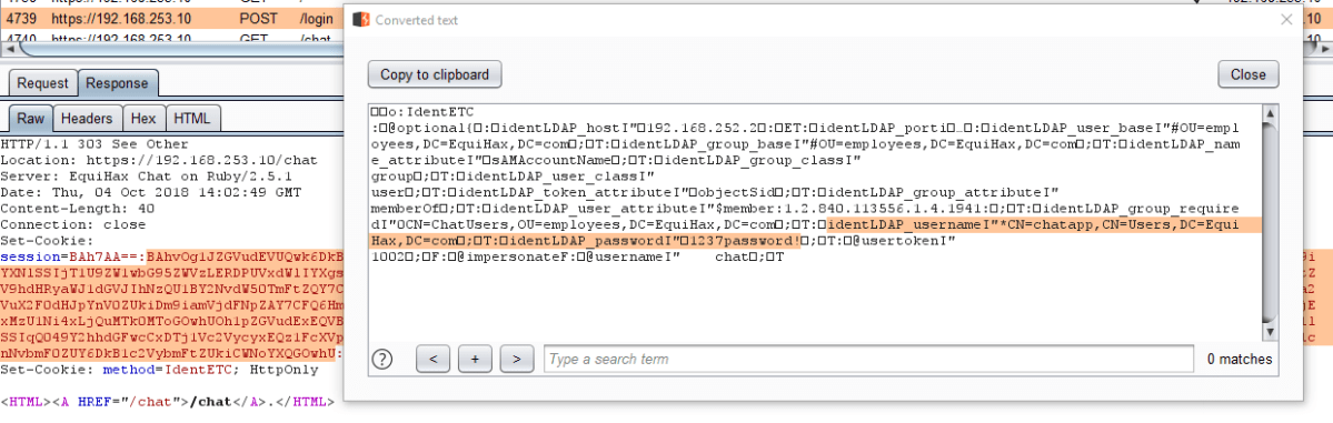 Susan’s password was eventually recovered, although not through the simple and presumably intended method of brute forcing. We’ll be kind to ourselves and say it was potentially due to network stability issues, since the eventually discovered correct pair of credentials were passed to the server during multiple brute force attempts.