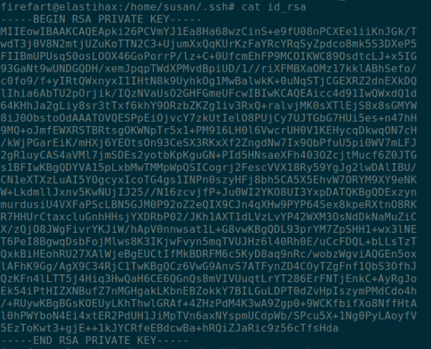 Reviewing the box revealed a number of flags, however of greater use was an SSH key inside the home directory of the user susan.