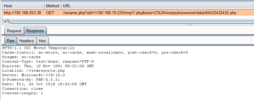 Checking out the server header, we could see that somewhat unusually for a PHP application, it was hosted on Windows. This suddenly made the rename.php file a lot more interesting.