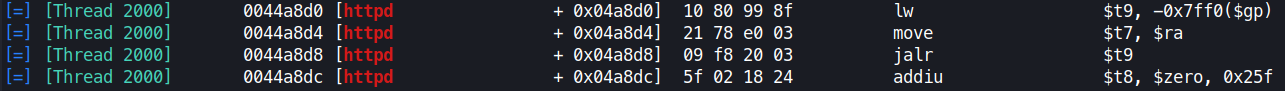 ql = Qiling([rootfs_path + "/bin/httpd"], rootfs_path, multithread=True, verbose=QL_VERBOSE.DEBUG)