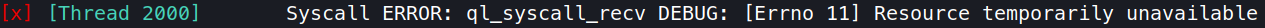 httpd now runs for a few seconds then crashes with [Errno 11] Resource temporarily unavailable. The error message is from Qiling and related to the ql_syscall_recv() handler which is responsible for emulating the recv() syscall.