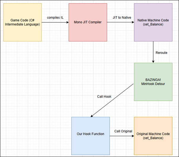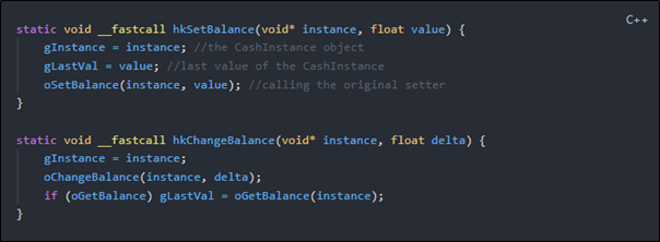 MinHook reroutes calls to the real methods into these hooked versions and then forwarded back to the original. During the “hook”, we retrieve the cash instance and the last value of the instance.