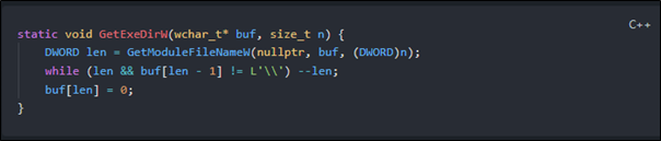Before loading the game’s DLLs and resolving the function exports, it helps to know where the game executable lives on disk. This here is a little Windows helper function for finding the directory of the game executable.