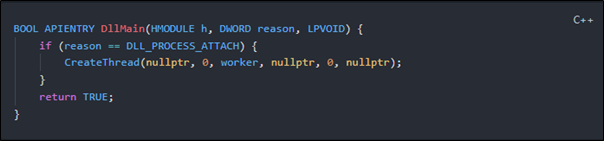 When our DLL is successfully loaded, this DLL entrypoint (DllMain) is called, and new thread is created inside the game process to run the worker function (the heart of our DLL).