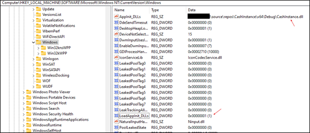 • Change the registry “LoadAppInit_DLLs” to 1