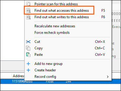 Once we’ve identified the correct memory address for cash, we can investigate which instructions are interacting with it by right-clicking and selecting “Find out what accesses this address