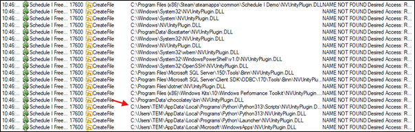 Scrolling through the results we quickly see a DLL called "NVUnityPlugin.DLL" that goes down the DLL search order: