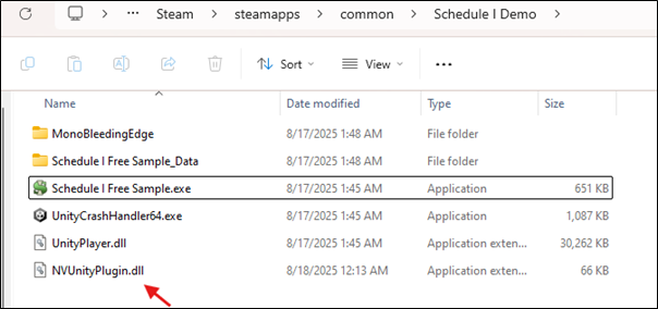We renamed our DLL to NVUnityPlugin.dll and put it nicely in the game directory.