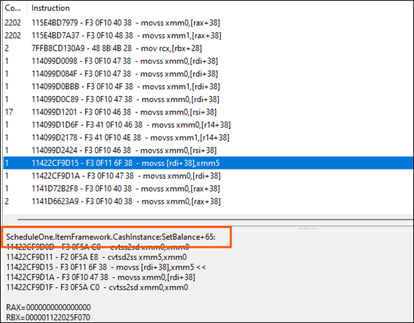 • Inside the hook, capture the CashInstance object and, on a chosen hotkey press, update its value.