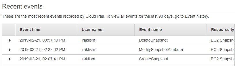 CreateSnapshot and DeleteSnapshot events can be very frequent in medium-to-large scale AWS deployments with automated backup processes. However, the ModifySnapshotAttribute is more interesting: