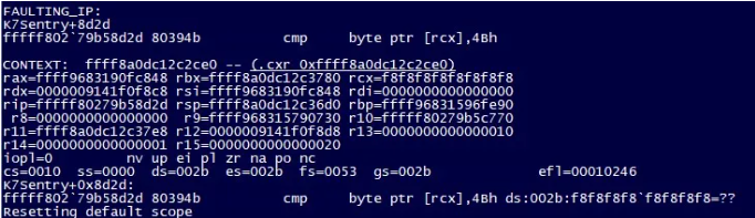 Assuming that RCX points to a valid kernel address where the first byte is 0x4B, so that the previous check succeeds (cmp byte ptr [rcx], 4Bh), we arrive at the second part of the vulnerable function as shown above.