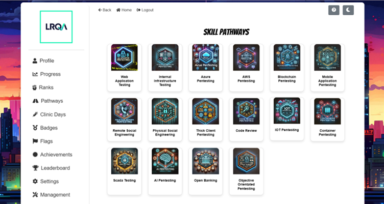 Coming up with SMART goals can sometimes be difficult, but we're fortunate that penetration testing has some prescribed pathways and activities; reputation building, certifications, and skill broadening for example. We also have internal labs for technical upskilling - now we have a platform managing this through flags and leaderboards and allows us to make goal setting simple and consistent and career pathways transparent.