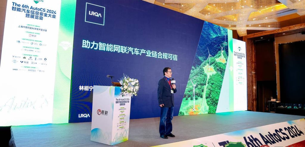 During the conference, Mr. Zuning Lin, Lead Auditor at LRQA, delivered an insightful speech titled "How can assurance services help achieve trustworthiness and sustainability for the auto sector?" The presentation emphasised the importance of LRQA’s compliance, assurance, and advisory services, particularly in cybersecurity and AI, crucial for the evolving needs of the automotive industry.