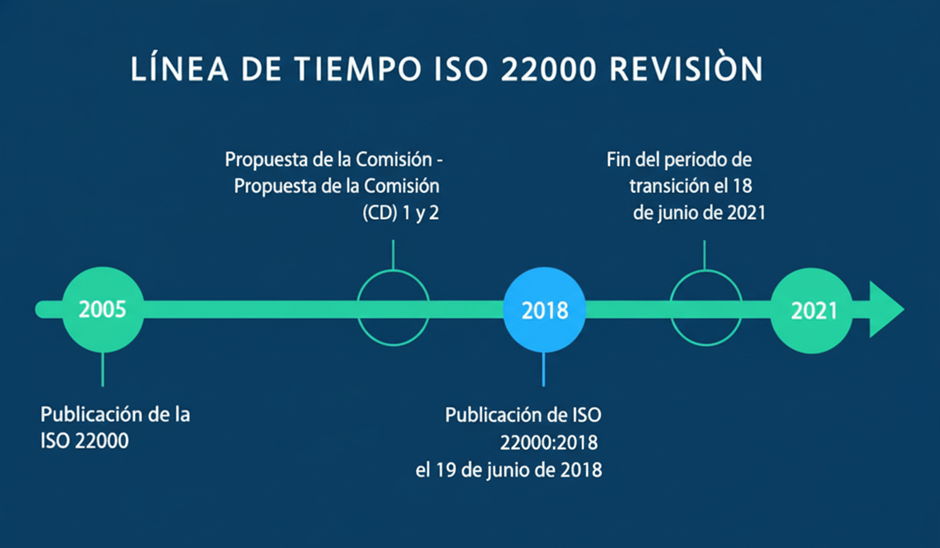 La última versión de ISO 22000 se publicó en junio de 2018. Actualmente, no hay ninguna nueva versión de ISO 22000 en desarrollo. Sin embargo, la norma se revisa cada cinco años y puede requerir cambios en función de las condiciones del mercado.