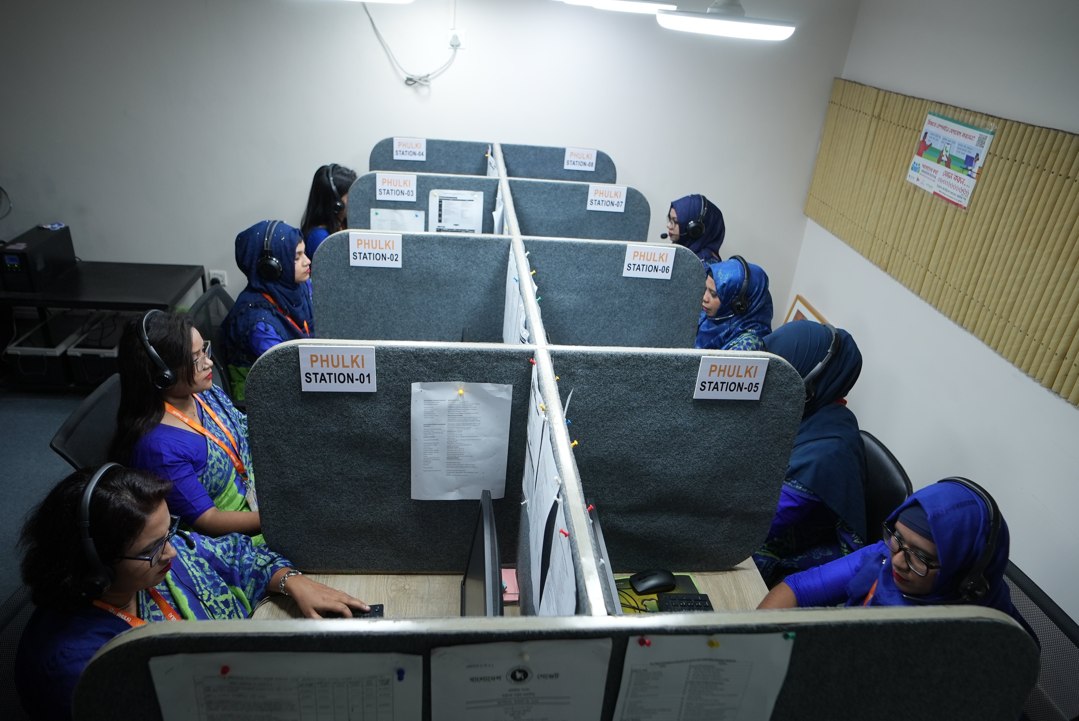 Staf pusat panggilan yang bekerja di stasiun Phulki