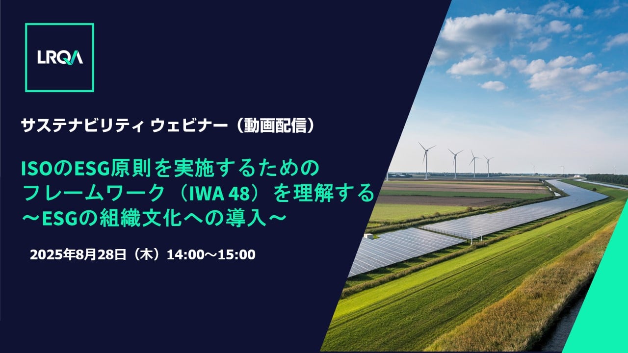 本ウェビナーでは、ISOのESG 実施原則の概要を解説し、ISOマネジメントシステムとの関連性を踏まえて、ESGを組織文化へ導入していくための方法を考察します。