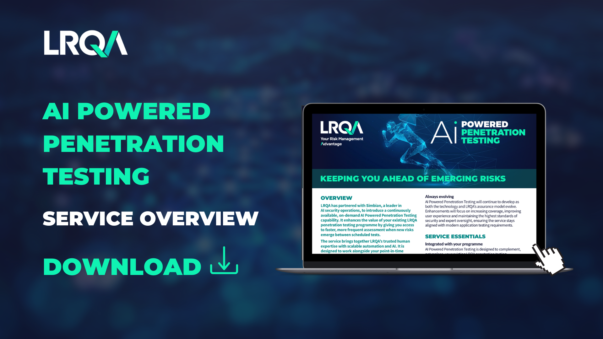 LRQAのAIを活用したペネトレーションテストは、信頼性のある専門家の知見と拡張性の高い自動化を組み合わせ、環境の変化に応じて脆弱性をより速く、より頻繁に把握できる仕組みです。コンサルタントが主導するテストを補完する形で設計されており、問題の早期発見、対策の早期確認、一年を通じた安定したセキュリティ確保につながります(資料は英語版になります)。
