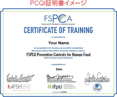 ※全カリキュラム終了後、FSPCAのPCQI 証明書が発行されます。