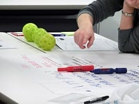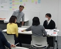 この講師と受講生間のキャッチボールが次第に受講者同士のキャッチボールに広がり始めると、グループワークに取り組みます。