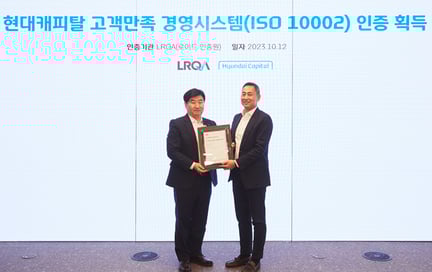 현대캐피탈 - ISO 10002 인증수여식 2023년 10월 12일 목요일 2023년 10월 12일 현대캐피탈의 ISO 100002 (고객만족경영시스템) 인증 획득을 축하하는 인증 수여식이 진행되었습니다. 더 읽어보기
