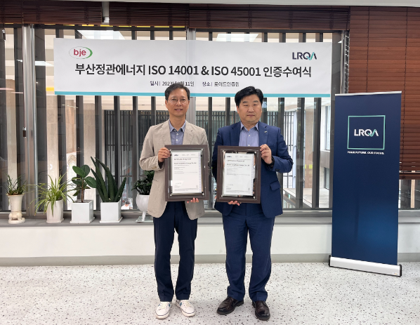 (사진: 로이드인증원 / 부산정관에너지 김경태 대표님(왼쪽), 로이드인증원 이일형 대표이사(오른쪽)