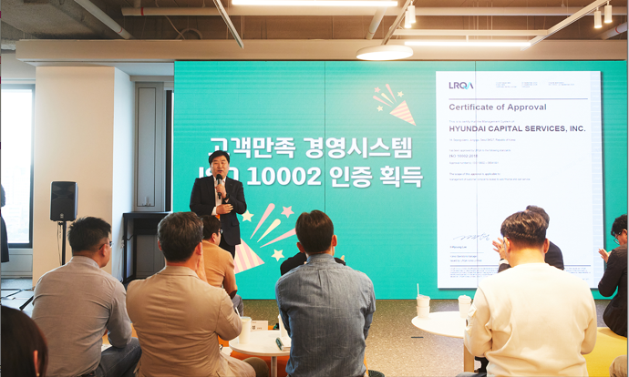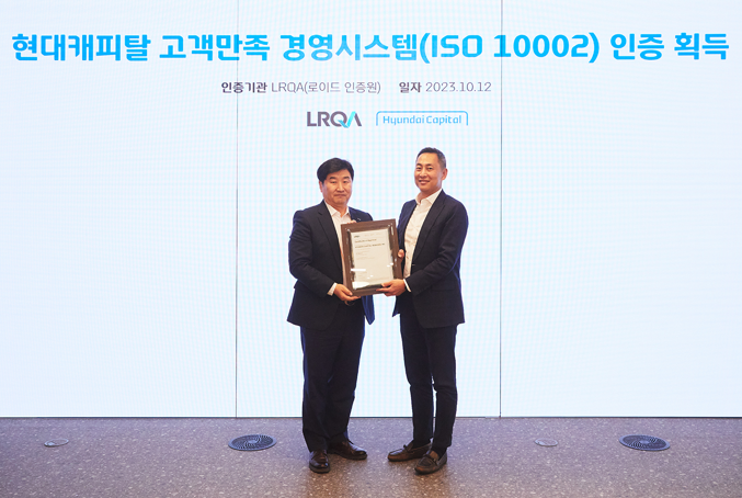 2023년 10월 12일 현대캐피탈의 ISO 10002 인증 취득을 축하하는 인증수여식이 현대캐피탈 본사에서 진행되었습니다.