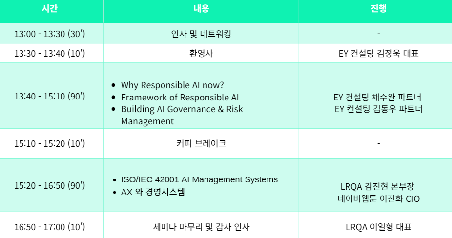 AI 도입과 활용이 확대되는 환경에서 AI 거버넌스와 관리체계 구축을 고민하는 기업 실무자분들의 많은 관심과 참여를 부탁드립니다.