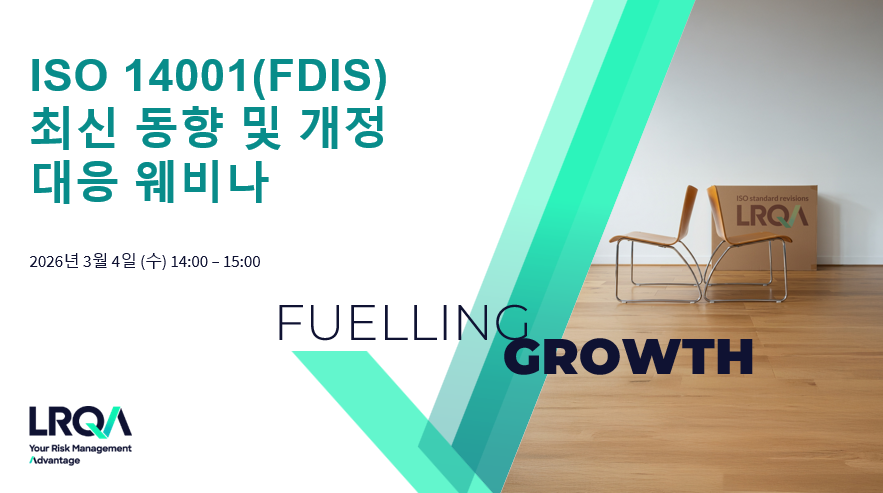 LRQA는 ISO 14001 환경경영시스템 FDIS 발행을 계기로, 개정과 관련한 최신 정보를 전해드리는 웨비나를 3월 4일(수)에 개최합니다.