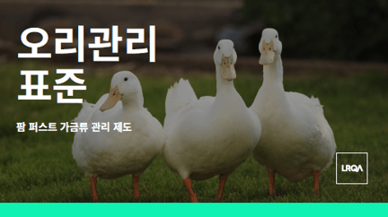 Farm First (팜 퍼스트) - 오리 관리 표준 LRQA의 농장 보증 스킴인 Farm First는 동물 및 근로자의 복지와 지속가능한 목표를 달성할 수 있도록 지원하는 LRQA의 보증 제도 입니다. 이번 브로셔에서는 오리 관리 표준을 확인하실 수 있습니다. 더 읽어보기