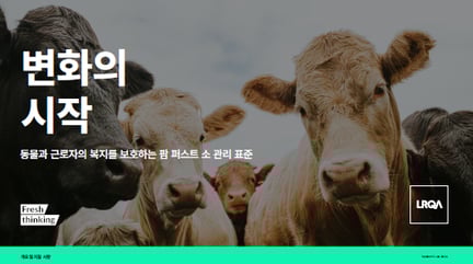 Farm First (팜 퍼스트) -소 관리 표준 LRQA의 농장 보증 스킴인 Farm First는 동물 및 근로자의 복지와 지속가능한 목표를 달성할 수 있도록 지원하는 LRQA의 보증 제도 입니다. 이번 브로셔에서는 소 관리 표준을 확인하실 수 있습니다. 더 읽어보기