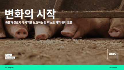 Farm First (팜 퍼스트) -돼지 관리 표준 LRQA의 농장 보증 스킴인 Farm First는 동물 및 근로자의 복지와 지속가능한 목표를 달성할 수 있도록 지원하는 LRQA의 보증 제도 입니다. 이번 브로셔에서는 돼지 관리 표준을 확인하실 수 있습니다. 더 읽어보기