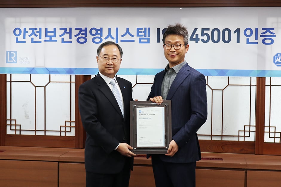 글로벌 수준의 안전보건 체계를 위해 안전 경영 활동에 대한 임직원 및 근로자의 적극적인 참여를 바탕으로 ISO 45001 인증을 추진해온 ADT캡스. 그리고 로이드인증원의 인증 심사를 거쳐 국제적 기준에 부합하는 안전보건 경영시스템 ISO 45001 인증을 획득하였습니다. 무엇보다 국내 보안업계 최초의 ISO 45001 인증으로 더욱 의미있는 인증수여식 자리였습니다.