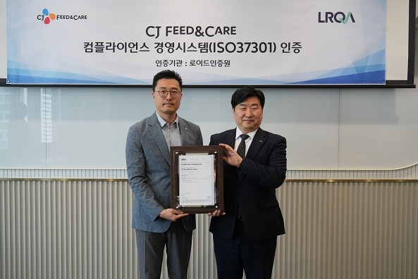 2023년 5월 3일 CJ 피드앤케어 을지로 본사에서 규범준수경영시스템 ISO 37301 인증 획득을 축하하는 인증수여식을 진행하였습니다.