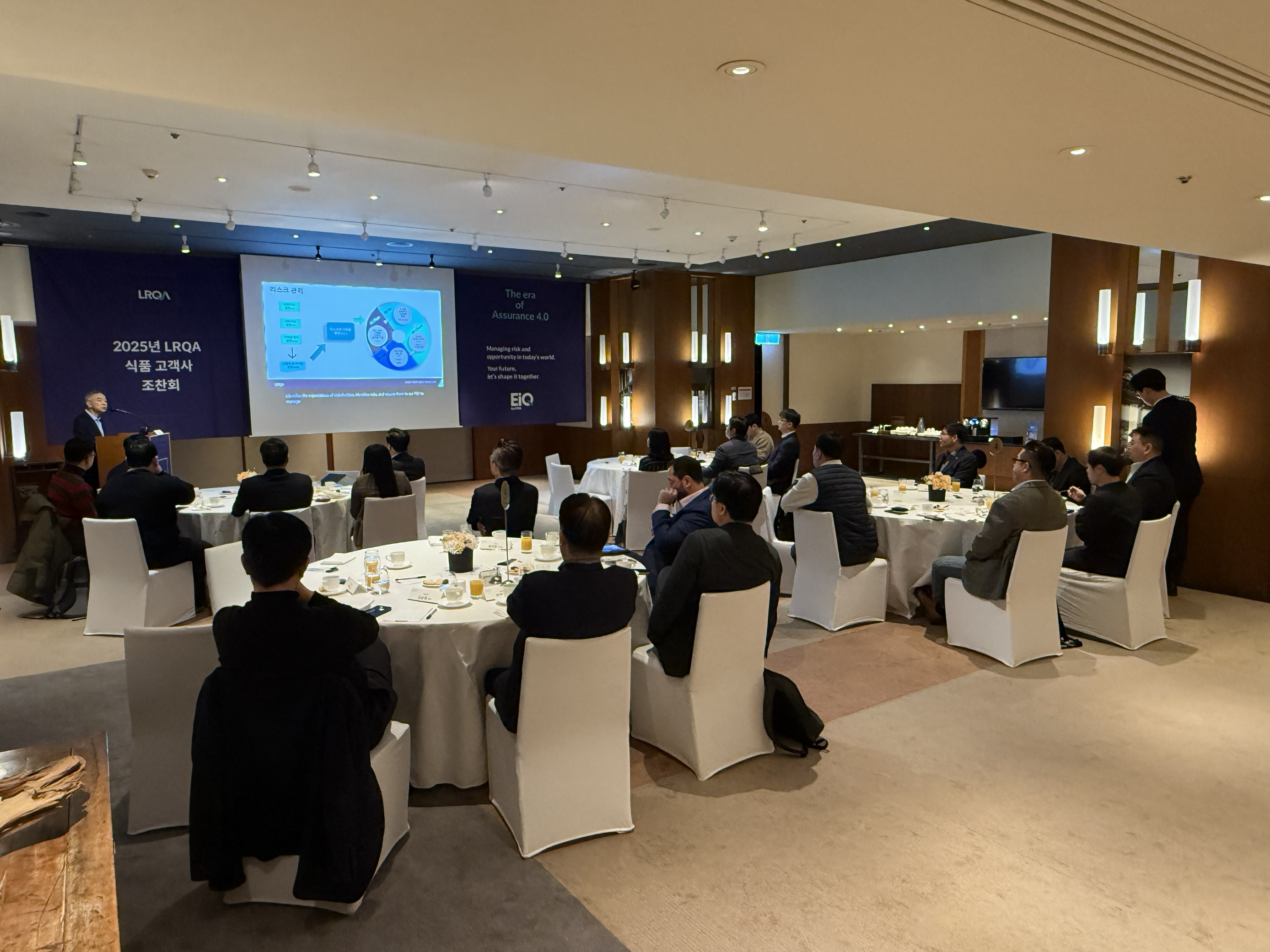 지난주 금요일, LRQA는 서울 하얏트 호텔에서 LRQA 식음료 VIP 고객사의 주요 임원 및 관계자들과 함께 조찬회를 개최했다. 이번 행사는 급변하는 비즈니스 환경 속에서 기업의 회복 탄력성을 강화하고, 소비자 및 이해관계자의 지속가능성 요구에 효과적으로 대응하기 위한 전략을 논의하는 자리로 마련됐다.