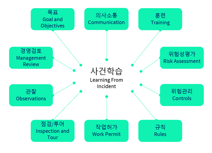 - 사건보고 및 조사의 결과로 안전시스템에 필요한 개선과 업데이트 내용을 파악하여 적용 합니다. - 효과적인 사고조사 프로세스 구축