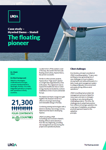 Combining existing technologies with a desire to develop new energy sources, Statoil took the lead in developing Hywind. ...