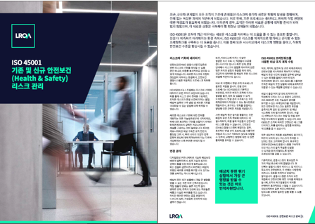 ISO 45001은 조직이 최근 대두되는 새로운 리스크를 처리하는데 도움을 줄 수 있는 중요한 툴 입니다. 점점 더 예측하기 어려워지는 환경 속에서, ISO 45001 은 리스크를 체계적으로 평가하고 관리할 수 있는 프레임워크를 구축하는데 도움을 줍니다.