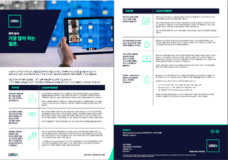 LRQA의 심사원은 원격 심사 기술을 활용하여 문서를 검토하고, 인터뷰와 현장 심사를 실시 할 수 있습니다. 따라서 원격심사는 방문 심사와 동일한 수준을 유지하는 동시에 효율적으로 자원을 활용할 수 있도록 해줍니다.