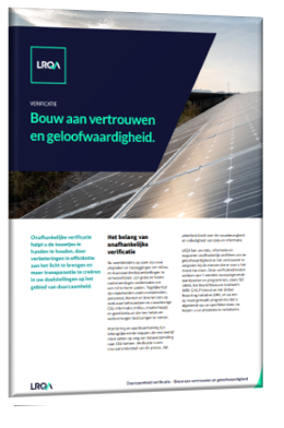 Download de factsheet voor meer informatie over hoe onafhankelijke verificatie u helpt de touwtjes in handen te houden, efficiëntie aan het licht te brengen en te zorgen voor meer transparantie in elk aspect van uw duurzaamheidsagenda.